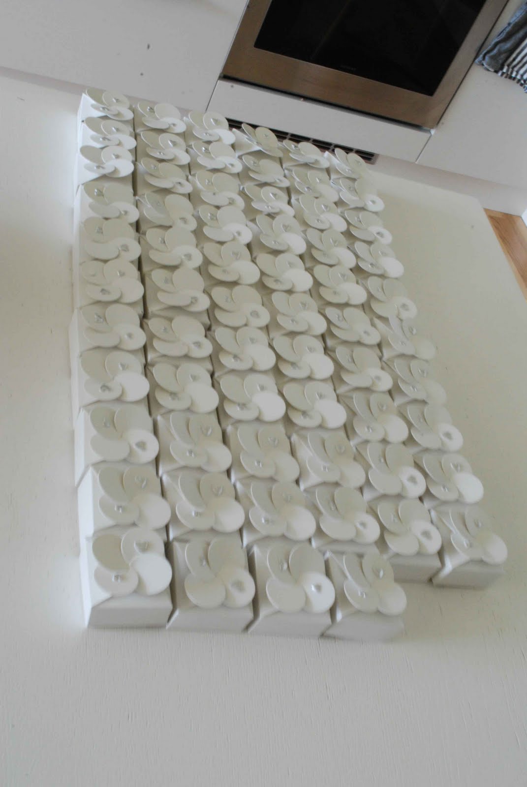 13. august i år blev Hâns og jeg gift og dermed blev jeg også en Kofod. Men inden dagen havde der været mange forberedelser, vi havde lavet invitationer, menukort, bordkort osv. Vi syntes der skulle være en lille ting til alle gæsterne, uden det dog skulle blive amerikanske tilstande med dyre gaver. Vi fandt derfor en lille æske, som vi fyldte med slik, der passede i farver med resten af oppyntningen: